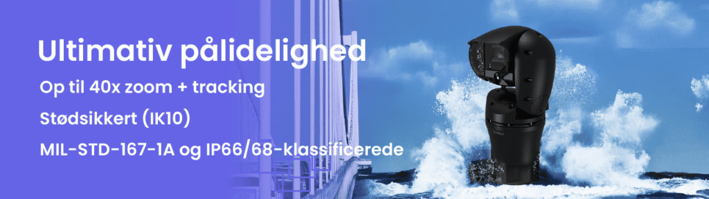 Med en zoomkapacitet på op til 40x og et robust, stødresistent og vandtæt design, er Aero PTZ-kameraerne udviklet til at levere uafbrudt videoovervågning selv under ekstreme vejrforhold. Kameraerne er certificerede efter IK10, MIL-STD-167-1A og IP66/68 standarder, hvilket gør dem modstandsdygtige overfor både slag og ekstreme temperaturer samt hård saltpåvirkning (C5-M). Med i-PRO’s nye gennemsigtige glasvarmer kan kameraerne operere stabilt og klart i temperaturer fra -50 til 65°C, hvilket gør dem pålidelige i alt fra isnende kulde til tropisk varme.